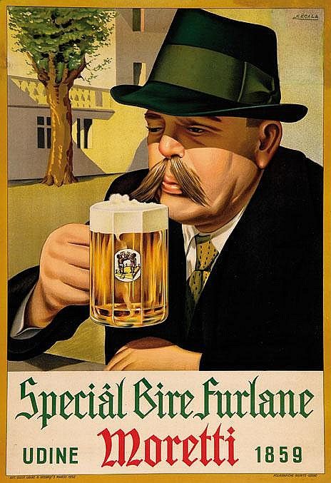 Now don’t get me wrong, Moretti is a good “Italian” beer, but currently it’s about as Friulian as any Heineken product, being brewed in Sardinia, Lombardi, Apulia, Aosta, and probably other non-Italian locations - in fact, it was even owned by Labatt until 1996. At the time though, it must have been quite a scandal for the supposedly local Italian beer to use a Nazi German image as the basis for its logo - but there was a lot of laissez-faire after the war. Apparently she received 800 marks (37,200 lire) in exchange for rights to the image after a minor legal dispute, so I suppose it’s legitimate now.